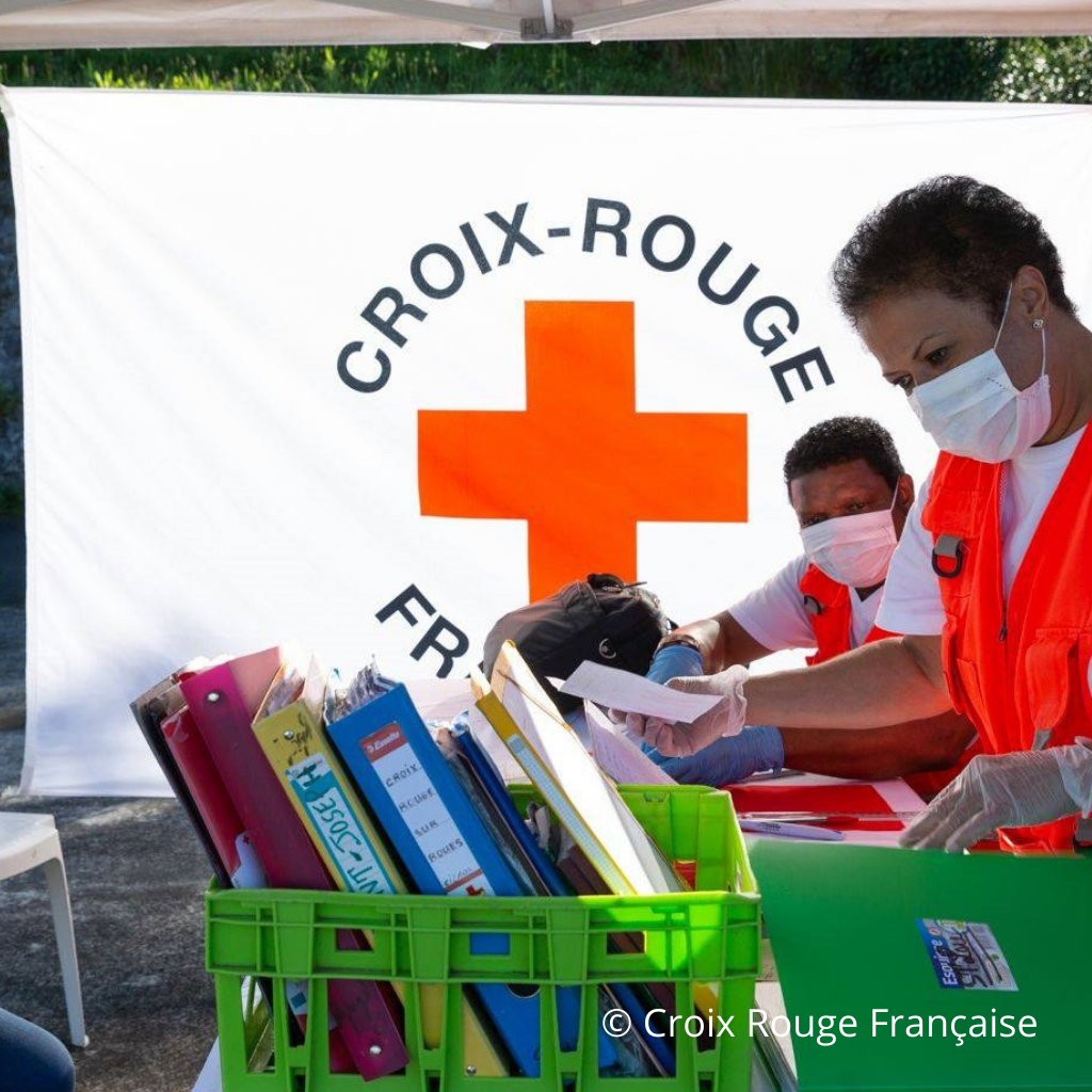 La Croix‑Rouge française est implantée à La Réunion depuis 1946, avec sa délégation territoriale basée à Sainte-Marie. Elle fédère environ 300 bénévoles répartis dans cinq antennes locales, encadrés par un bureau de six membres présidé par Georges Faubourg. Ses activités couvrent l’accueil et l’orientation, l’aide alimentaire, la vestiboutique, le Samu social, les maraudes, les postes de secours, les actions en milieu carcéral, d’éducation et d’hygiène. La délégation organise des formations grand public (PSC1, secourisme enfant et nourrisson, gestes qui sauvent) et des sessions pour former des équipiers secouristes . Par ailleurs, elle anime des actions de sensibilisation aux risques naturels via le programme Paré pas Paré en lien avec PIROI. Chaque antenne dispense un accueil social, distribue vêtements et denrées, propose accès à l’hygiène et accompagne les publics vulnérables. Elle assure également des postes de secours lors d’événements et intervient en situations d’urgence (cyclones, inondations…). L’ensemble des structures est soutenu par une direction territoriale occupant plus de 400 salariés œuvrant dans le domaine sanitaire, médico‑social et social.